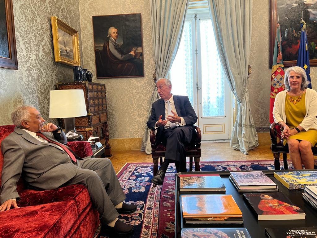 Eis PM no Sekretariu jerál partidu FRETILIN, Mari Alkatiri hasoru-malu ho Prezidente Repúblika Portugál, Marcelo Rebelo de Sousa iha Palásiu Belem, , Tersa (04/10/2022). Foto/Media Gabinete Eis-PM