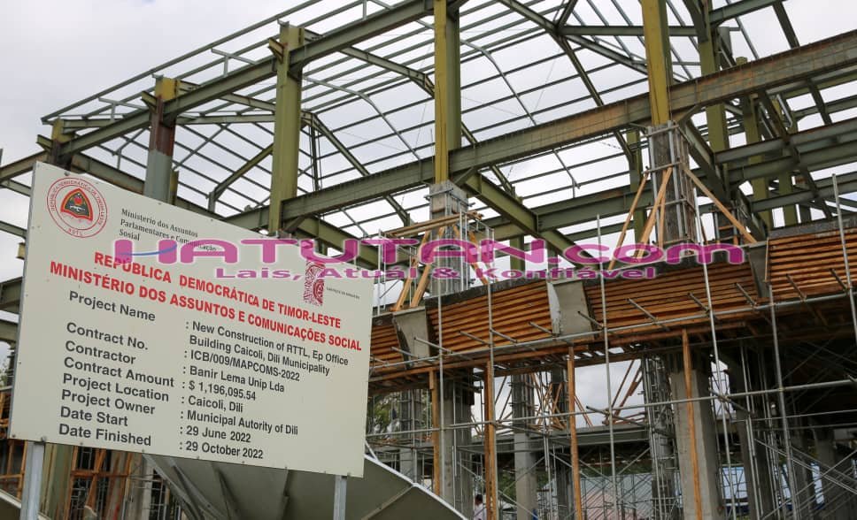 Hatutan.com konfirma ho Tékniku empreza BANIR LEMA UNIP.LDA, Francisco dos Reis Hornai ne’ebé responsabiliza hela konstrusaun edifísiu foun Rádiu Televizaun Timor-Leste, Empreza Públika (RTTL,E.P) relata katak, kontrusaun fíziku oras ne’e daudaun atinje ona 54% no empreza garante sei finaliza projetu refere iha Marsu 2024.