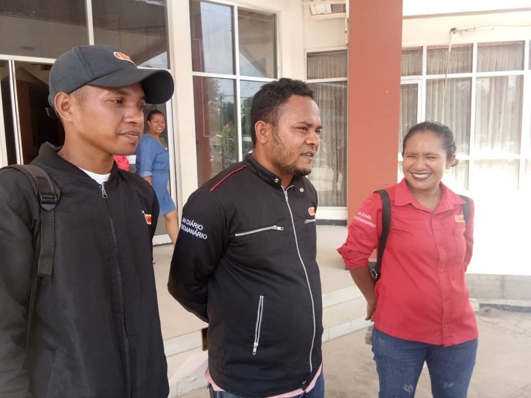 Jornalista Evaristo Mariz, Julito Ximenes ho Carmelita Isaac ne’ebé GMN hasai sira iha tinan 2019. Foto/Dok. Domingos Piedade
