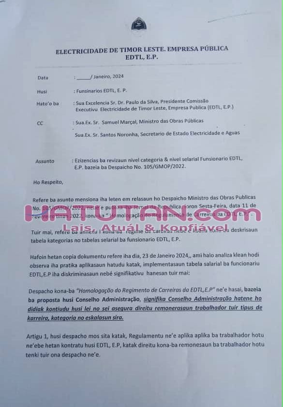 Funsionáriu EDTL,E.P Na’in-150 Halo Petisaun Kontra Superiór Sira Tanba Ko’a Sira-Nia Saláriu 50%