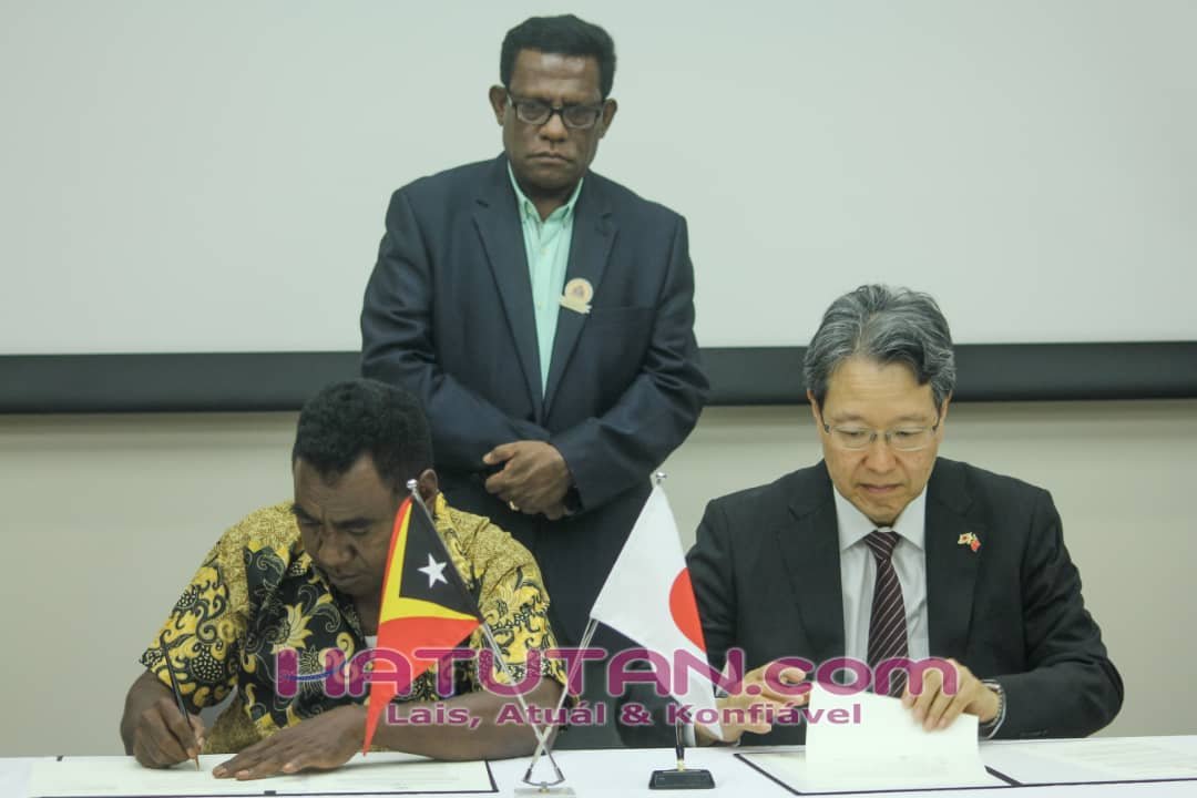 Embaixadór Japaun mai Timor-Leste, Kimura Tetsuya, hateten ónra ida bá nia hodi realiza seremónia asinatura kontratu bá projetu foun GGP bá konstrusaun edifísiu eskola EBC Maubara.