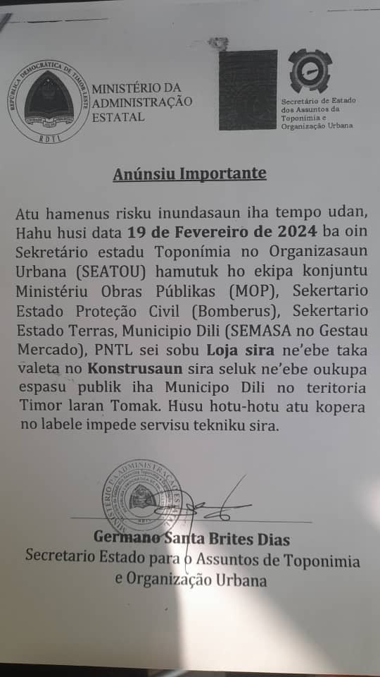 Governu Sei Sobu Loja no Konstrusaun sira Ne’ebé Okupa Espasu Públiku