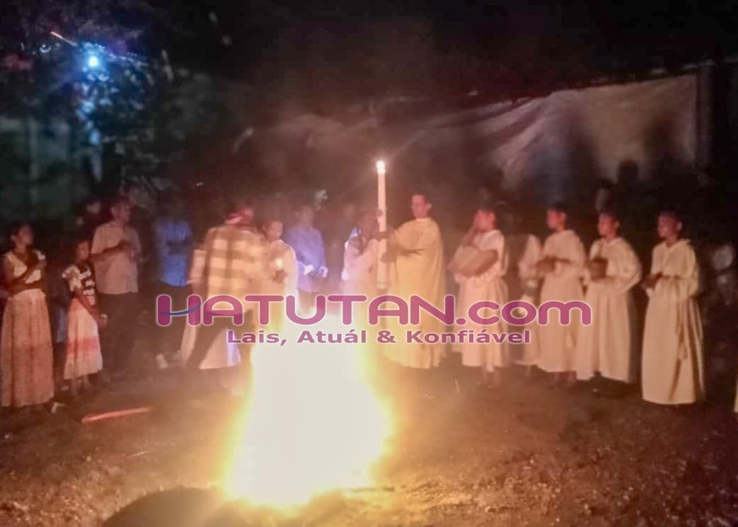 “Iha Sesta-feira Santa ita hotu-hotu hatene katak Jesus tenke hakat liu estasaun 14 monu, hamriik, la’o no Nia eskolante sira mós la’o sees hosi Nia, maibé Nia tuir de’it bá Nia promesa katak, Ha’u mai halo tuir de’it Ha’u Aman Nia hakarak tanba ne’e duni mak Nia moris hias hosi mate. Kristu Nia moris hias sai baze fundamental bá ita-nia fiar,” Padre Acácio de Castro, SDB haktuir iha nia omilia iha misa Sábadu Aleluia iha Kapela Na’i Feto Fatima iha Masin-Lidun, Tasi-tolu, Díli, Sábadu kalan (30/3/2024).