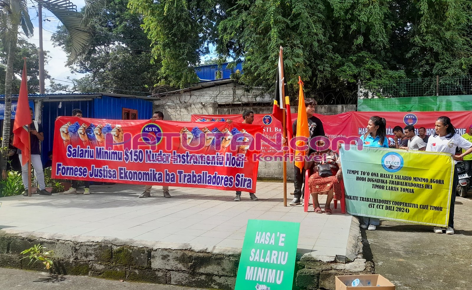Hatutan.com, (19 Abríl 2024), Díli – Konfederasaun Sindikatu Timor-Leste (KSTL) organiza asaun pasifika  da-uluk iha Díli  hodi  ezije Governu hasa’e saláriu mínimu  $115 bá  $150.