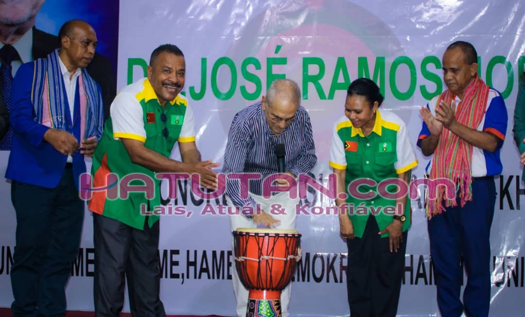 Liuhosi biban kongresu nasionál bá da-IV ne’e, Ramos-Horta parabeniza Konselleiru Supremu Partidu KHUNTO, José dos Santos Naimori Bucar no Prezidente Partidu Armanda Berta dos Santos, atu kontinua lori partidu KHUNTO bá oin tuir prinsípiudDemokrasia ne’ebé Timor-Leste adopta.