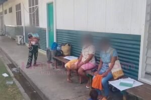Família husi paseinte labarik na’in-tolu ne’ebé seidauk bele baixa hodi tuur hein hela atu bele hetna kama bá baixa. Foto/Hatutan.com