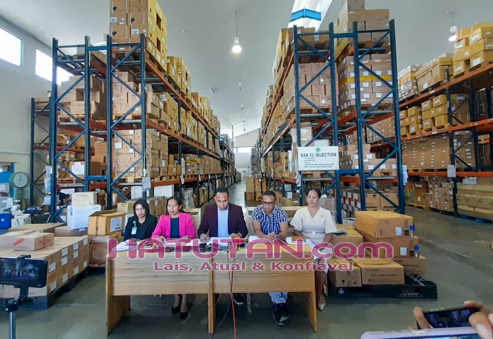 Konférensia imprensa Ekipa Integradu Saúde (EIS) iha Armazén INFPM, Kampu Alor, Díli, Kuarta (19/06/2024). Foto/Tome da Silva