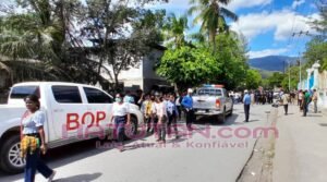 Bainhira eis-profesór kontratadu sira ne’e to’o iha resintu Ministériu Edukasaun nian, PNTL informa bele halo protestu maibé to’o tuku 13:30 Otl tenke hamamuk fatin ne’e maibé oras liu tia uitoan PNTL sira haruka atu hamamuk ka sees hosi portaun ME nia oin, maibé sira lakohi sees maka Polísia kaptura tiha sira na’in-31.
