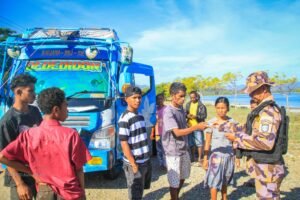UPF melakukan pemeriksaan terhadap dokumen WNTL yang melintasi wilayah perbatasan Batugade. Foto/PNTL
