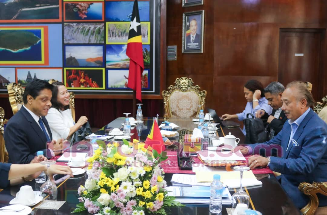 Vise-Primeiru-Ministru no Ministru Koordenadór ba Asuntu Ekonómiku no Ministru Turizmu no Ambiente Francisco Kalbuadi Lay hasoru malu ho Diretór Ezekutivu Enhanced Integrated Framework (EIF) Ratnakar Adhikari, Kinta (18/07/2024). Foto/Elio dos Santos da Costa