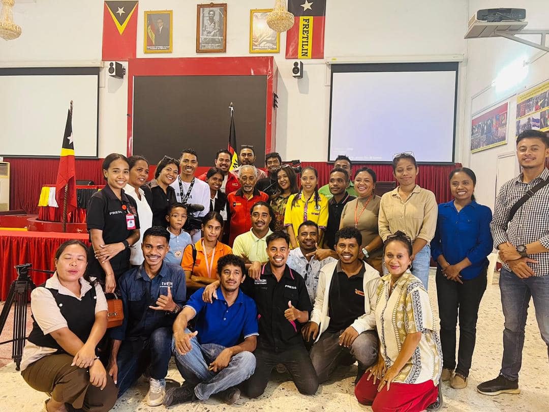 Marí Alkatiri foto hamutuk ho jornalista nasionál sira hafoin halo koférensia imprensa iha CCF, Kinta (07/11/2024). Foto/Foti husi Konta Facebook Mari Alkatiri