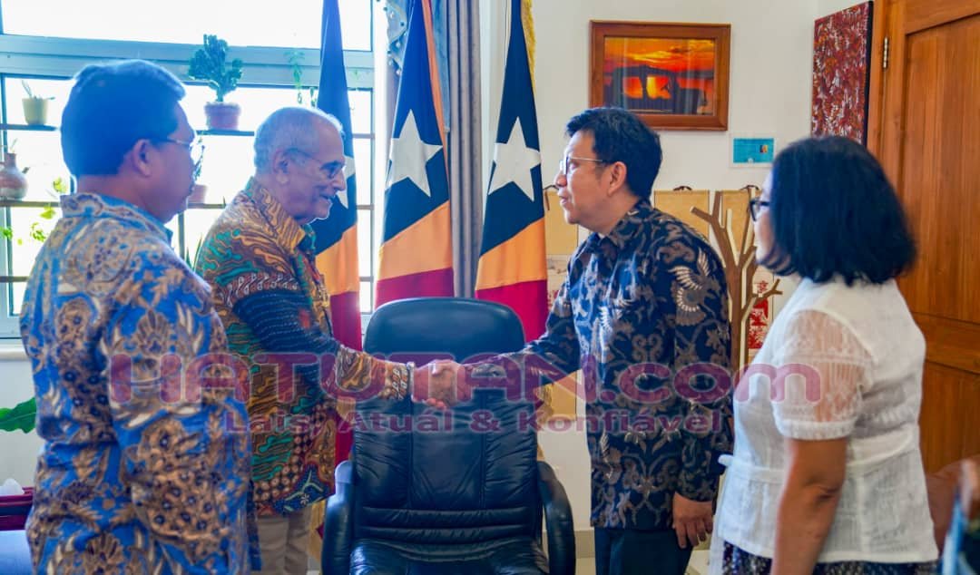 Rektor Unika Atma Jaya. Yuda Turana didampingi Dubes RI untuk TL, Okto Dorinus Manik bertemu presiden Timor Leste, José Ramos-Horta di Istana Negara RDTL, Senin (18/11/2024). Foto/Elio dos Santos da Costa