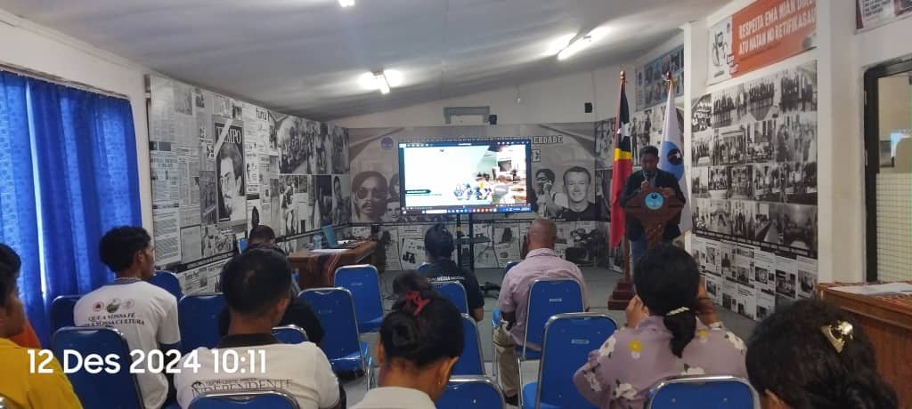 Aprezentasaun rezultadu monitorizasaun hosi Diretór Diresaun Análize no Monitorizasaun (DDAM), Alberico Júnior da Costa no akompaña hosi membru Conselho de Imprensa, Francisco Belo Simões da Costa, hatudu mós notísia hosi meius komunikasaun balu la sensivel jéneru, bias no estereotipu jéneru.