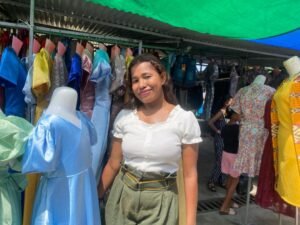 Aproveita tempu oportunu, liu-liu selebrasaun festa Natal nian, Venincia dos Santos Maia fa’an roupa iha fatin públiku sira tanba iha momentu ida-ne’e ema barak mak hola.