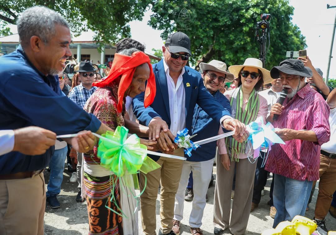 PM Xanana Gusmão akompaña hosi Ministru Petróleu no Rekursu Minerál (MPRM), Francisco Monteiro no autoridade lokal sira halo lansamentu bá projetu sízmiku iha Natarbora, Manatuto, Segunda (13/01/2025). Foto/Média GPM