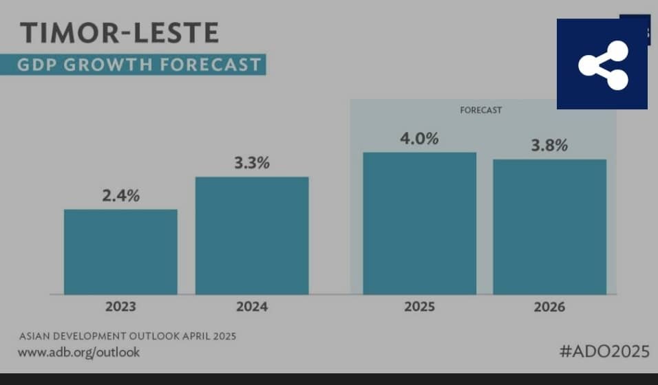 Iha ninia relatóriu ekonómiku emblemátiku, Perspetiva Dezenvolvimentu Aziátiku (ADO) Abríl 2025, ADB prevee kreximentu atu atinje 4.0% iha 2025 molok hamenus uitoan ba 3.8% iha 2026. Taxa kreximentu sira-ne’e—aas liu média istóriku—hetan apoiu liuliu hosi aumentu investimentu kapitál, konsumu privadu, no servisu privadu sira.