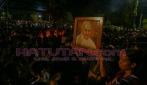 Hatutan.com, (26 Abríl 2025), Díli- Sarani Katóliku Timoroan rihun resin ne’ebé pertense ba uma kreda lokál Timor-Leste, Sábadu (26/04/2025), hale’u tuku 18:00 Oras Timor-Leste, ho sira-nia domin boot partisipa iha misa funerál Papa Francisco nian iha Tasi-Tolu, Díli.