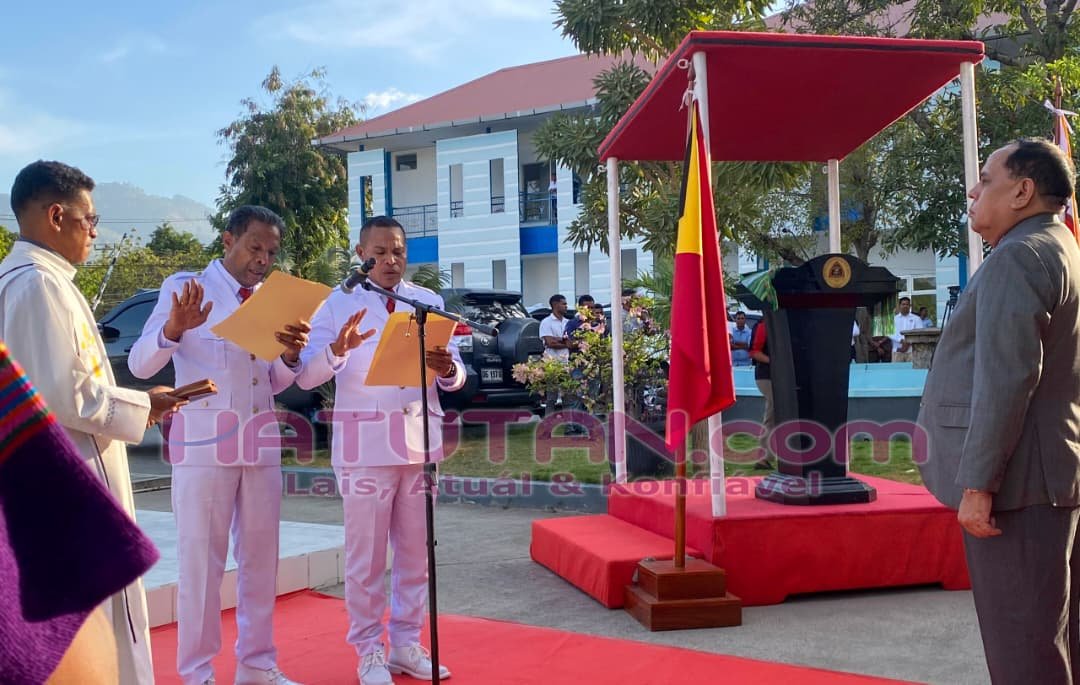 Ministru MAE Tomas do Rosario Cabral fó posse ofisiál ba PAM Dili Francisco dos Santos ho Paul Moniz Maia nu’udár PAM Bobonaro. Foto/Zita Menezes