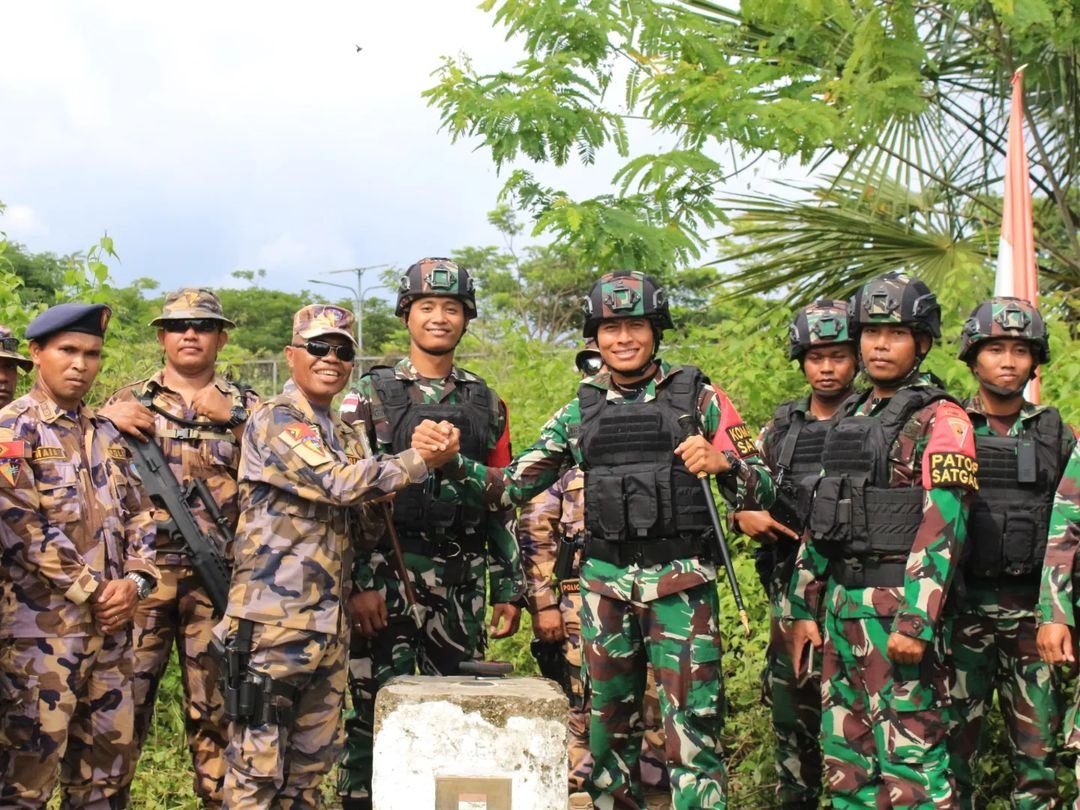 Sinergi menjaga perbatasan, Satgas Yonif 742/SWY gelar patroli bersama Unidade de Patrulhamento da Fronteira (UPF) Timor-Leste. Foto/Dok. Pusat Penerangan TNI