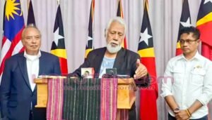 PM Xanana Gusmão akompañia husi Vise-PM Francisco Kalbuadi Lay ho Vise-PM Mariano Assanami Sabino. Foto/Marcelino Tomae