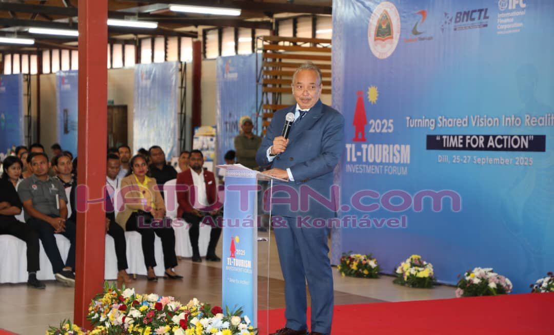 Hatutan.com, (25 Setembru 2025), Díli– Iha abertura Forum Investimentu Turizmu  Timor-Leste 2025, Vise Primeiru-Ministru bá Asuntu Ekonomia no Ministru Turizmu no Ambiénte, Francisco Kalbuadi Lay hateten, tema  “Time For Action   ida ne’ebé refleta determinasaun ho urjénsia tenke atuá hodi loke potensiál tranformativa turizmu nian bá futuru Timor-Leste.