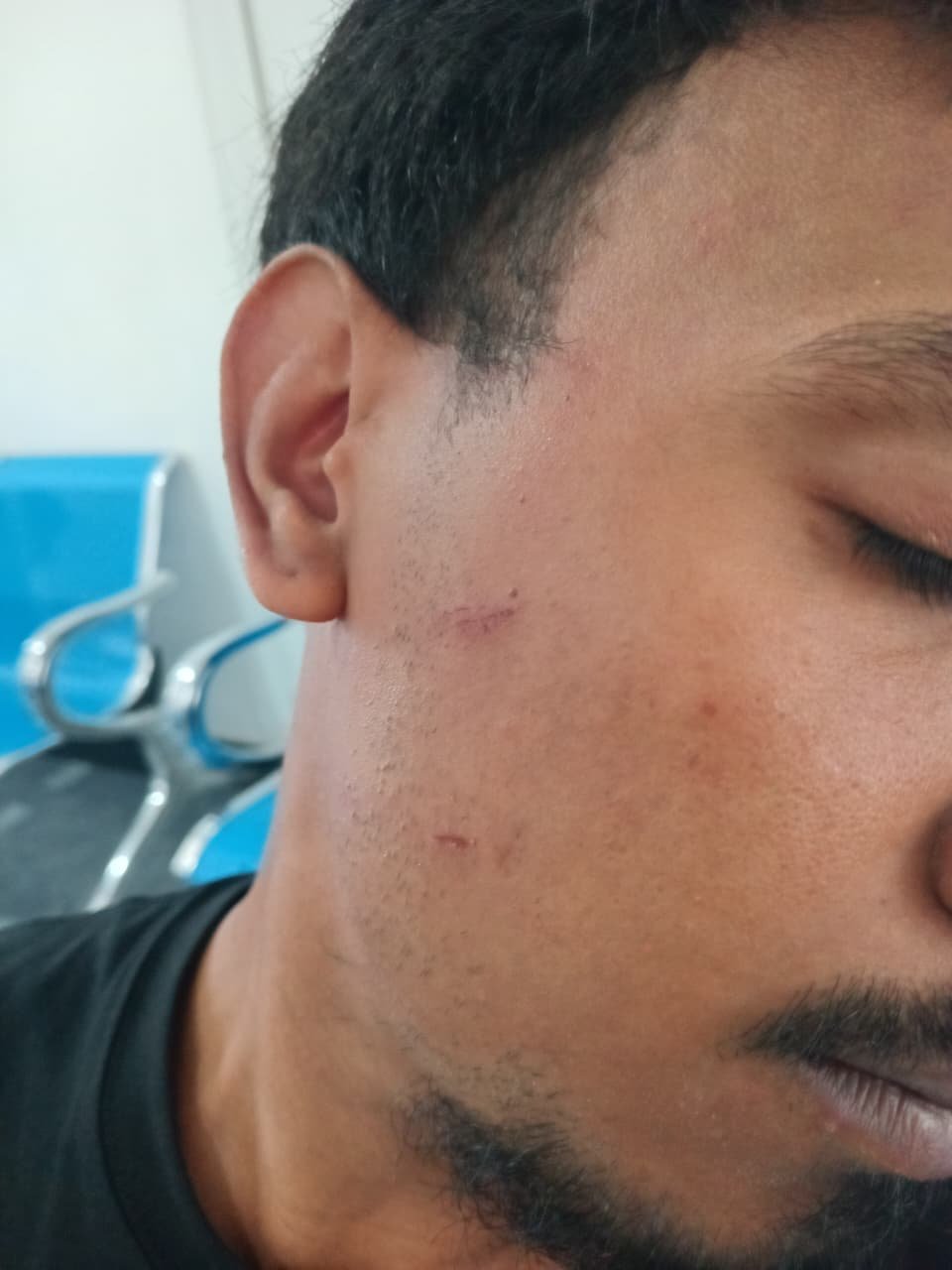 Vítima nia oin kanek hafoin baku husi membru PNTL nian-lima iha Pálasiu Governu nia oin, Kinta-kalan (15/10/2025). Imajen/Juvinal dos Santos