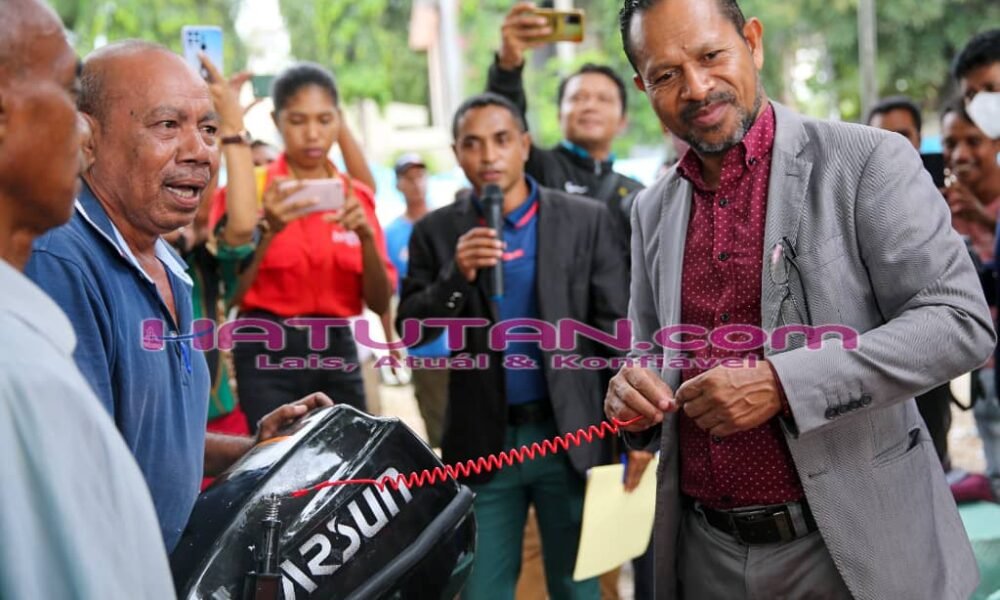 Hatutan.com, (23 Fevereiru 2023), Díli– Governu liuhosi Sekretáriu Estadu Peska, Kinta (23/2/2023), distribui tán bero fiberglass ho nia ekipamentu peska nian bá grupu peskadór ualu (8)...