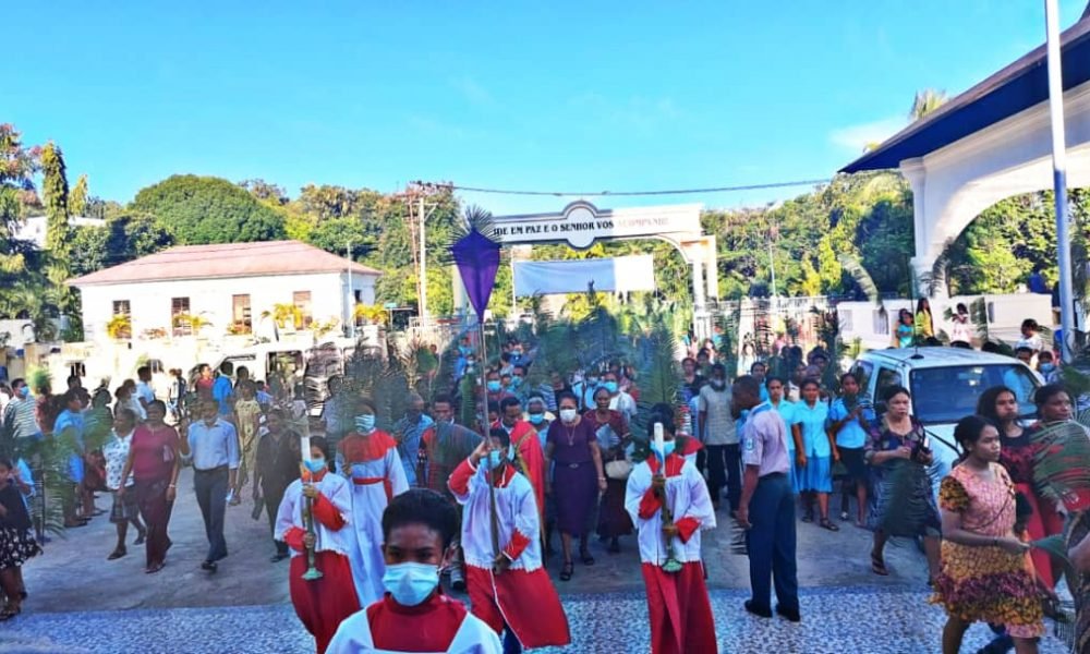 Hatutan.com, (10 Abríl 2022), Baucau-Uma-kreda Katóliku iha mundu no iha Timor-Leste, Domingu (10/04/2022), selebra misa Jesus Nia glória liuhusi tradisaun Domingu-ramus.