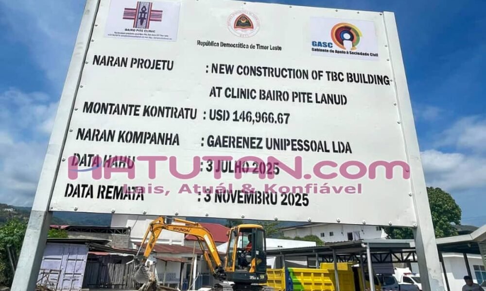 Hatutan.com, (06 Jullu 2025),Díli—Kompañia Gaerenez Unipesoal Lda, hahú ona halo servisu ba projetu konstrusaun foun Laboratóriu Tuberkuloze ka TBC iha Klínika Bairru-Pité, Díli.