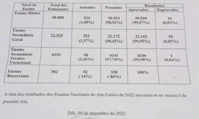 Hatutan.com, (12 Dezembru 2022), Díli—Rezultadu ezame nasionál iha territóriu tomak hatudu katak, iha estudante na’in-21 mak la pasa hosi totál númeru 58.000.