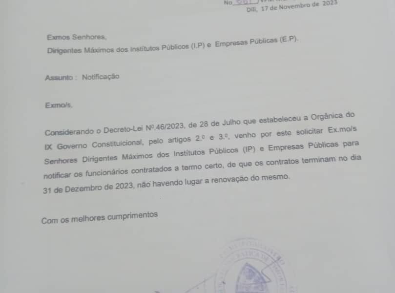 Hatutan.com, (27 Novembru 2023), Díli—Vise Primeiru-Ministru, Ministru Koordenadór bá Assuntu Ekonómiku, Ministru Turizmu no Ambiente (MKAE-MTA), Francisco Kalbuadi Lay sei hasai duni funsionáriu kazuais ne’ebé mak...