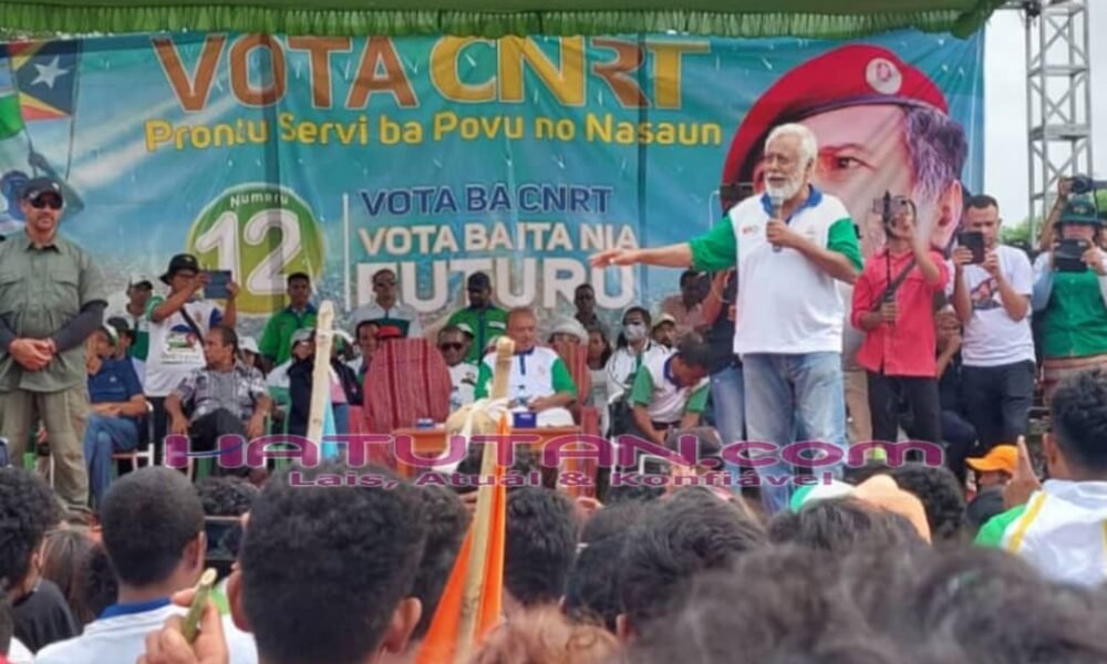 Hatutan.com, (25 Abríl 2023), Lautém- Prezidente Partidu Congresso Nacional Reconstrução Timorense (CNRT), Kay Rala Xanana Gusmão, hateten bainhira partidu CNRT fila bá ukun iha períodu 2023-2028...