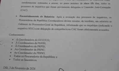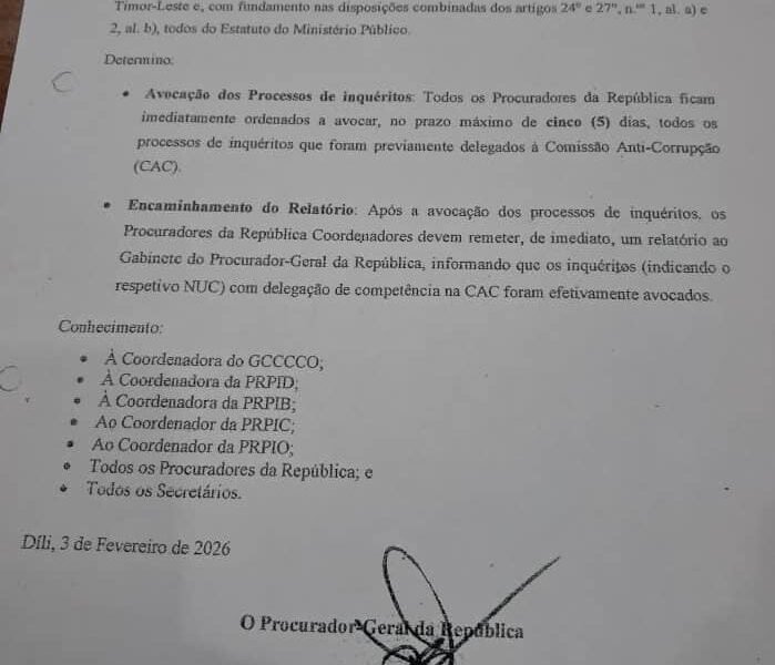 Hatutan.com, (14 Abríl 2026), Díli– Programa Monitorizasaun Sistema Judisiariu (JSMP-sigla Ingles) ezije bá Komisáriu Komisaun Anti Korrupsaun (CAC), Rui do Santos Pereira ho Prokuradór Jerál Repúblika...