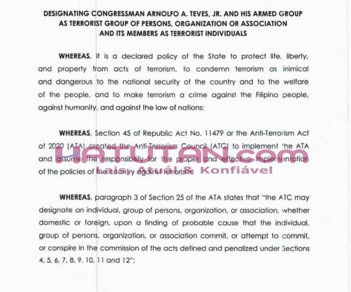 Dezde Jullu 2023, Konsellu Anti-Terrorizmu Deklara Arnolfo Teves Jr Terrorista