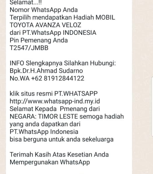 Hatutan.com, (04 Marsu 2022), Díli-Timoroan na’in-89 sai vítima ba mensajen falsa husi ema deskoñesidu liuhusi WhatsApp no Facebook.