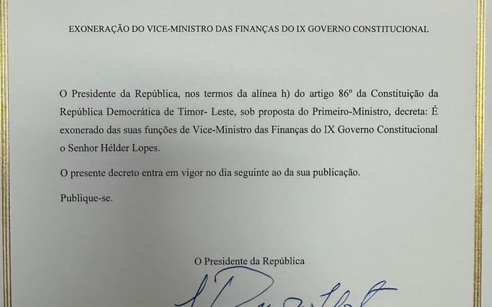 Prezidente Repúblika Aprova Proposta Primeiru-Ministru bá Ezonerasaun Vise-Ministru Finansas