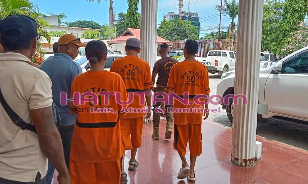 Hatutan.com, (24 Fevereiru 2024), Díli -Tribunál Judisiál Primeira Instánsia Dili (TJPID) liuhosi primeira interrogatóriu, Sábadu (24/02/2024), aplika medida koasaun haat (4) bá arguido na’in-tolu (3) nu’udár...